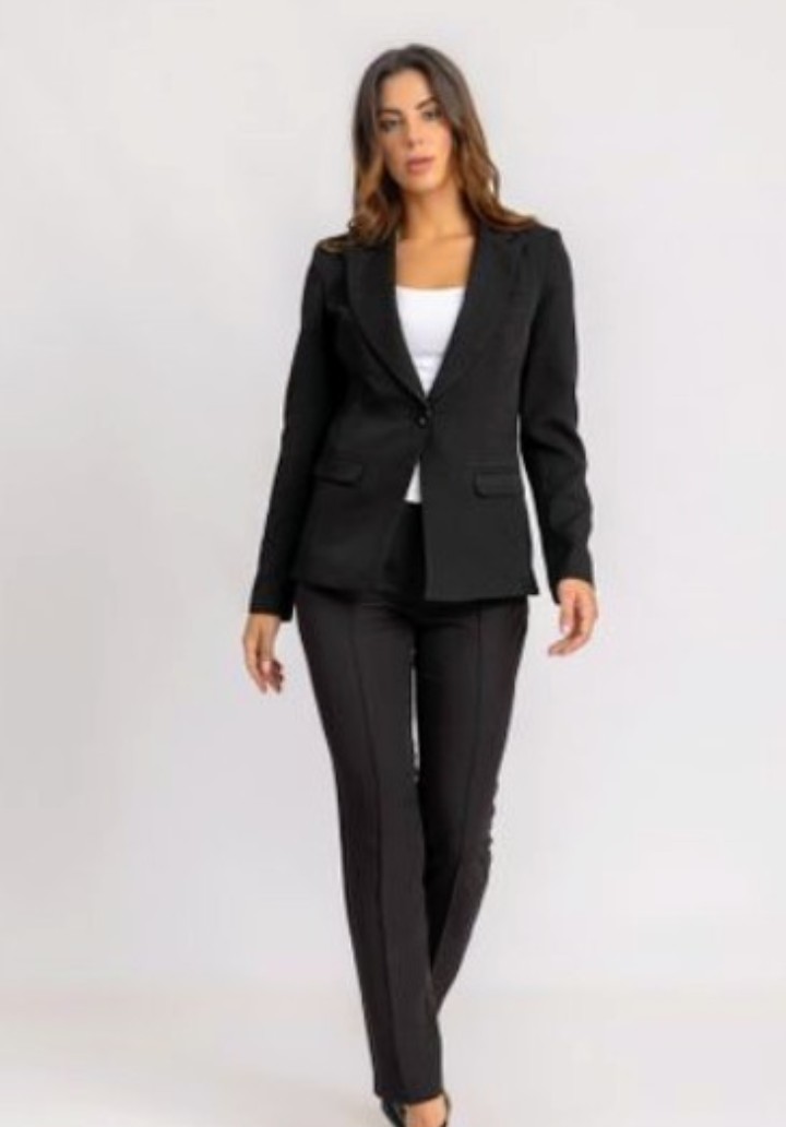 البليزر الكلاسيكي (Classic Fit): يأتي بصف واحد من الأزرار وطول متوسط، وهو الخيار المثالي لبيئة العمل الرسمية.